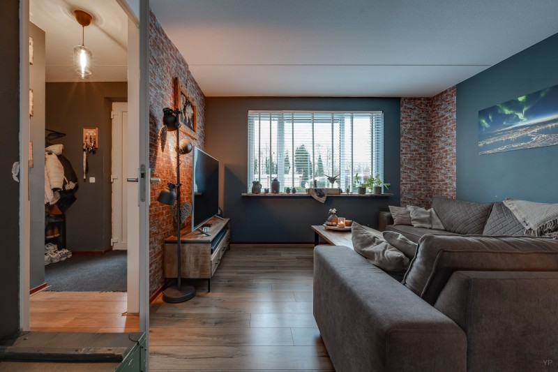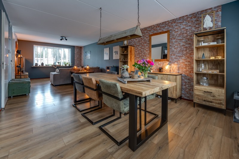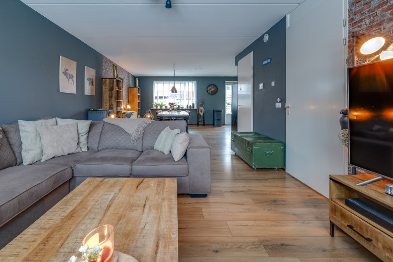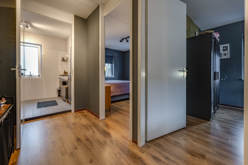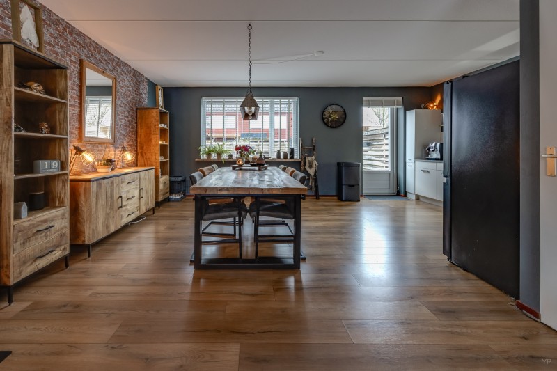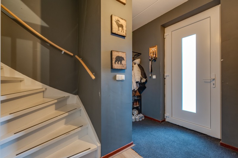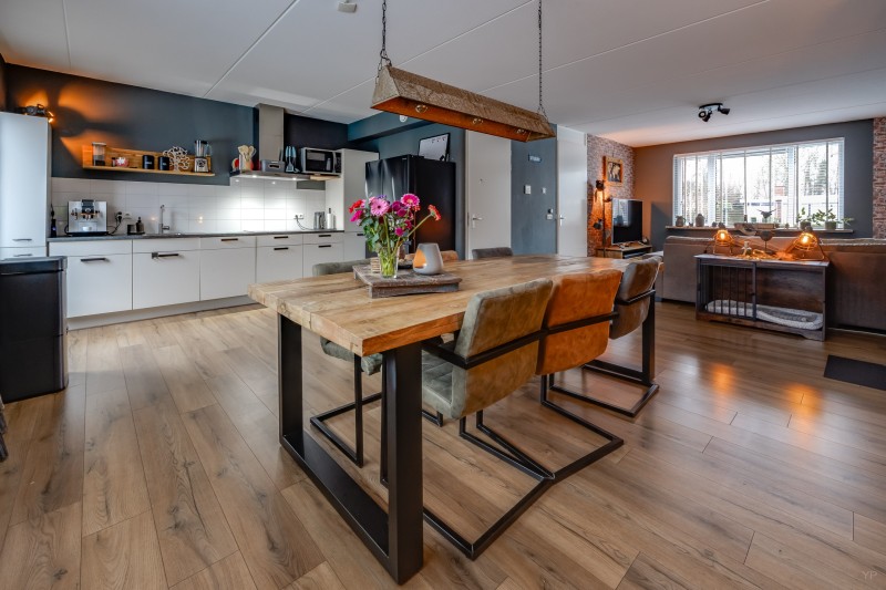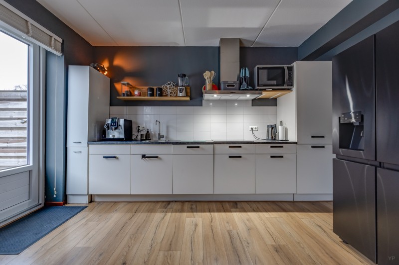Indeling: hal/entree met meterkast, modern toilet met hangend toilet en fontein, doorzonwoonkamer met een pelletkachel,ruime inloopkast, half open keuken met aanbouwkeuken en diverse inbouwapparatuur, tuindeur naar de tuin op het zuiden.