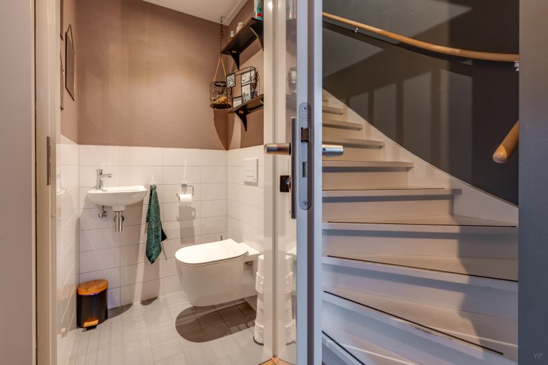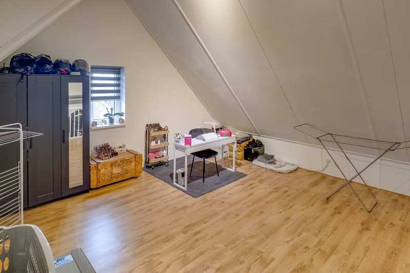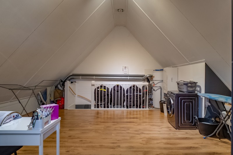 2e verd.: vaste trap naar de verrassend ruime zolderverdieping met aansluitpunten voor de witgoedapparatuur en