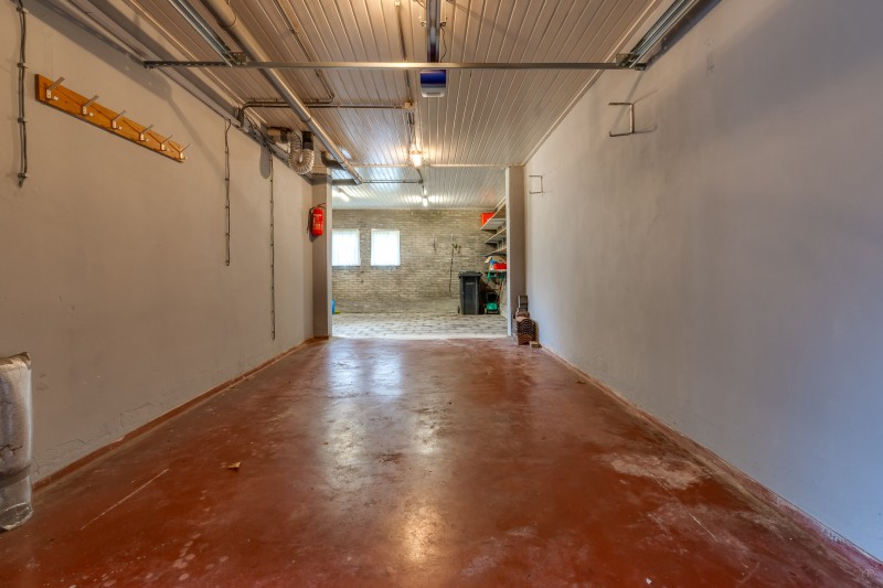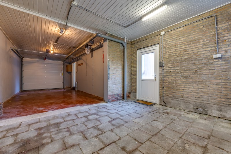 Hal/entree; meterkast; toilet; L-woonkamer met openhaard, uitzicht over groenstrook en dubb. terrasdeur; woonkeuken met aanbouwkeuken v.v. div. inbouwapparatuur; tussenhal met achter-entree en toegang tot aangebouwde garage met inpandige klusruimte, tuindeur en elektr. sectionaaldeur.
