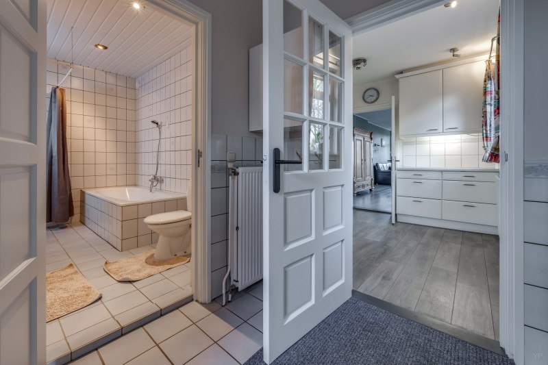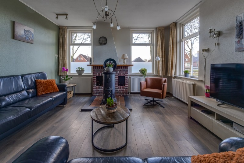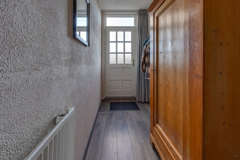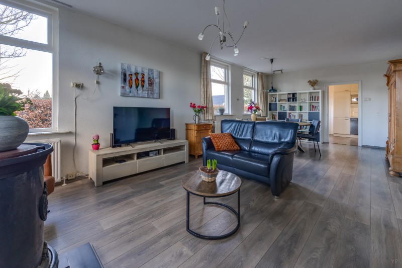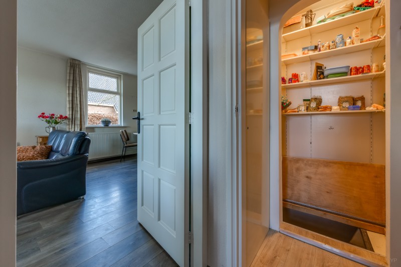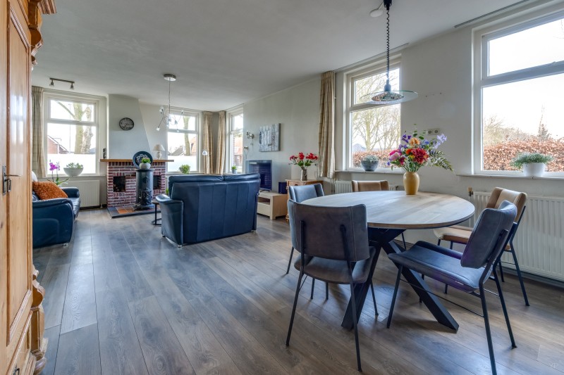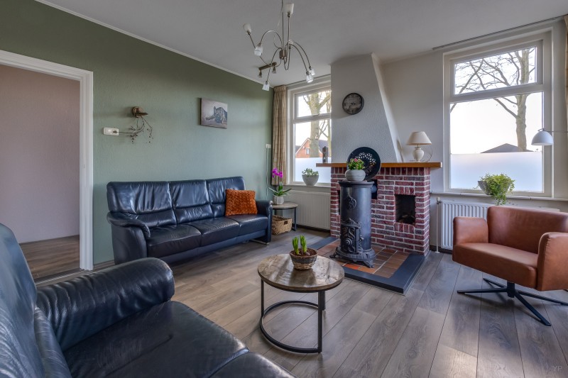 Indeling ; Hal/ entree, bergruimte met luik naar kelder, meterkast, royale woonkamer met sfeelvolle houtkachel, trapopgang naar 1e verdieping, bergruimte met CV opstelplaats, gesloten keuken met div. inbouwapparatuur, badkamer met ligbad, douche, wastafel en toilet achterentree.
