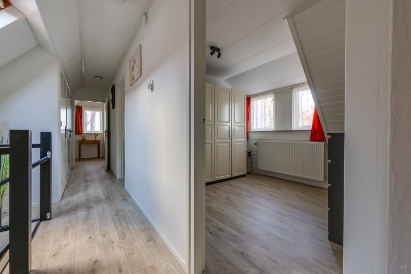 1e verdieping; Overloop met vaste kasten, 2e toilet, 4 slaapkamers.