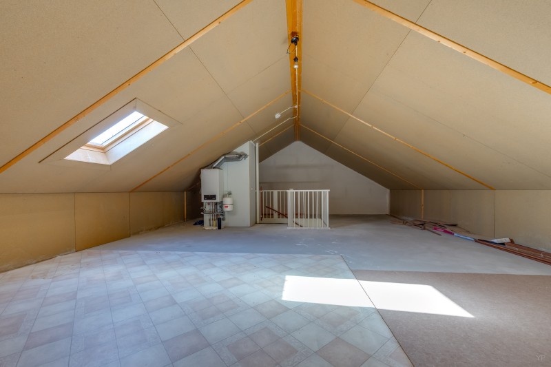 Bereikbaar via een vaste trap, royale zolderruimte van maar liefst 54 m² met dakraam (geschikt voor eventueel een extra slaapkamer, hobbyruimte, bergruimte etc.) CV opstelplaats (nieuwe Intergas 2026), opstelplaats voor de mechanische ventilatie en extra aansluitingen voor witgoed.