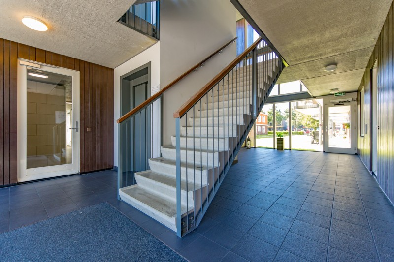 De centrale hal is voorzien van elektrische deuren met intercom telefoon. De etage is via een trapportaal en lift bereikbaar. Middels de royale galerij komt u bij uw eigen voordeur met balkon.