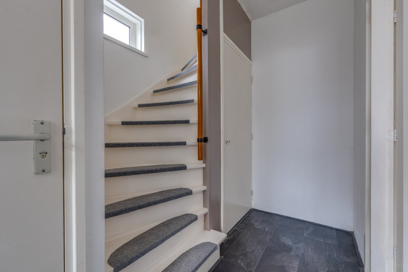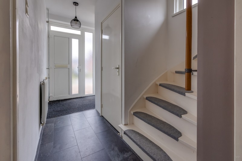 Via de entree kom je in de hal met meterkast en praktische kelder-/trapkast. Het toilet is voorzien van een fonteintje.