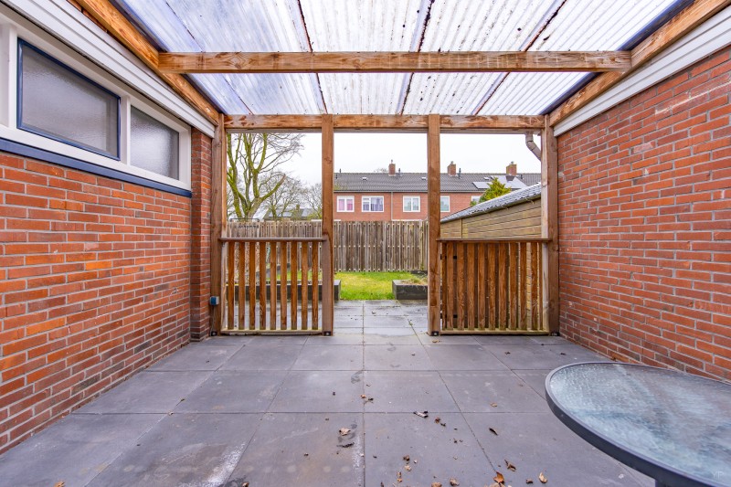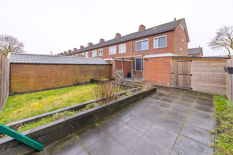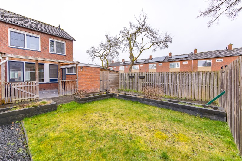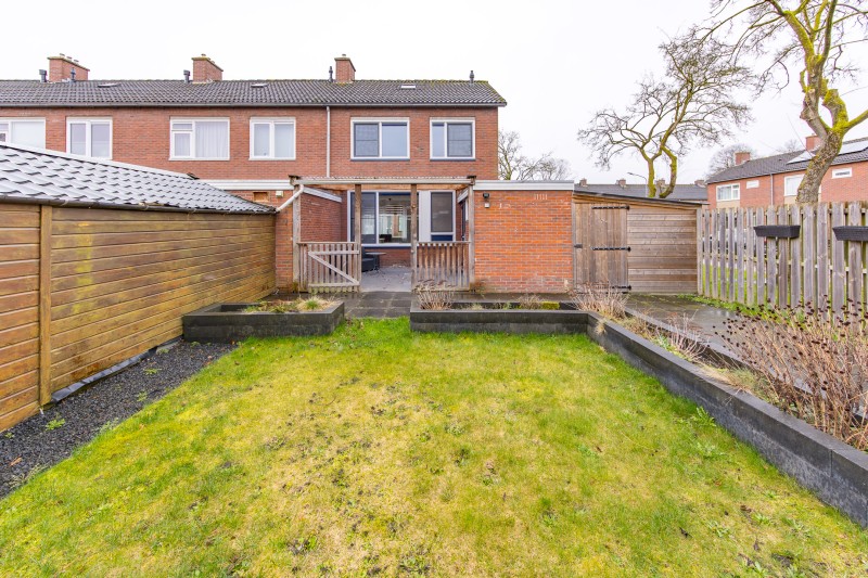 De besloten achtertuin is onderhoudsvriendelijk aangelegd en voorzien van degelijke schuttingen en een achterom.