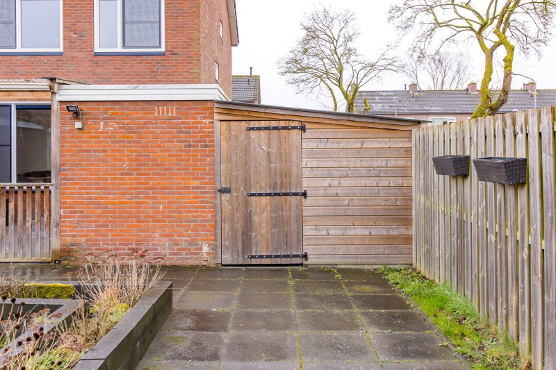 Daarnaast is er een houten schuur/berging aanwezig voor extra opslag.