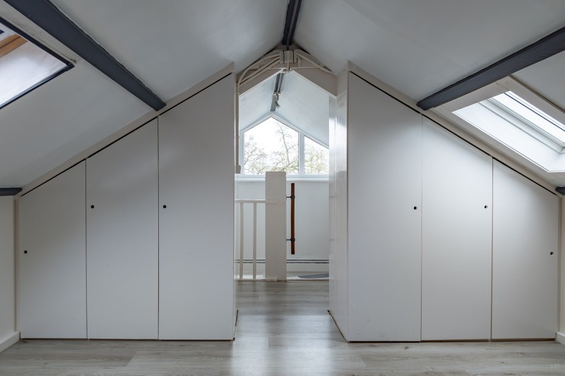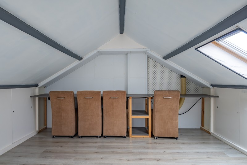 Op de tweede verdieping bevindt zich een lichte zolderslaapkamer, eveneens voorzien van laminaat. Ideaal als extra slaapkamer, werkruimte of hobbykamer.