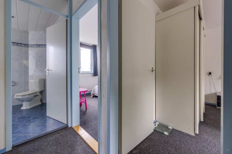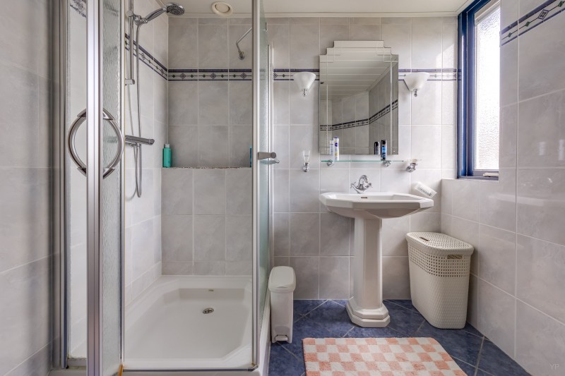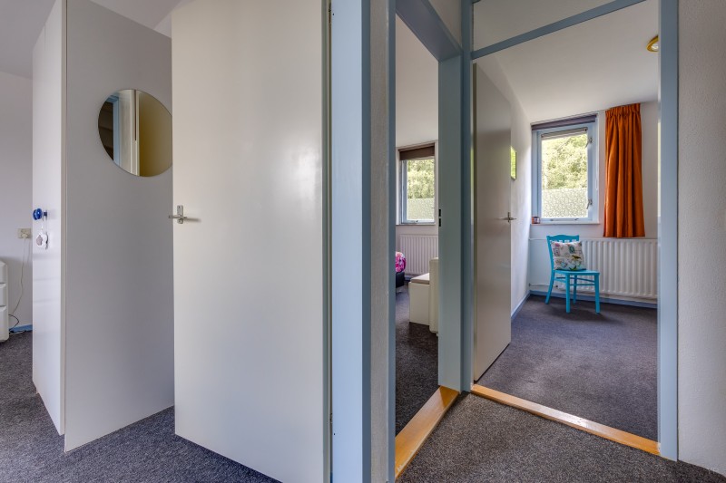 Eerste verdieping: overloop, drie slaapkamers, badkamer voorzien van douchecabine, wastafel, tweede toilet en mechanische afzuiging.