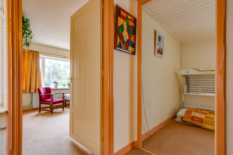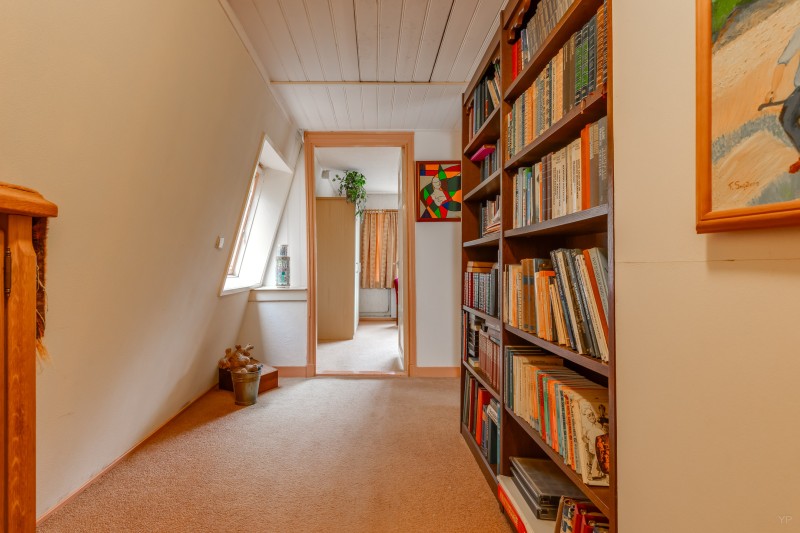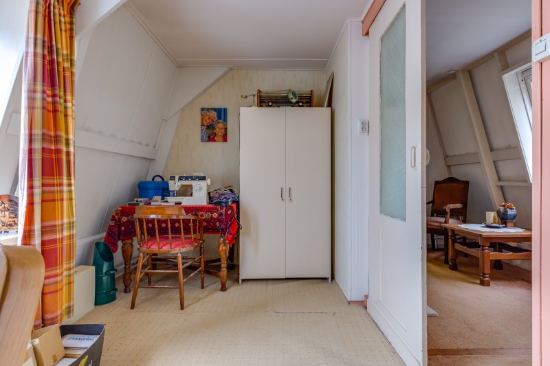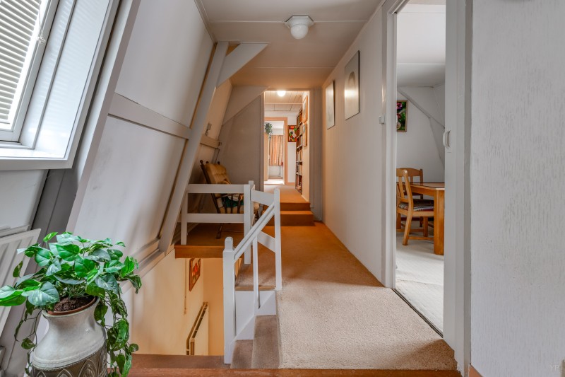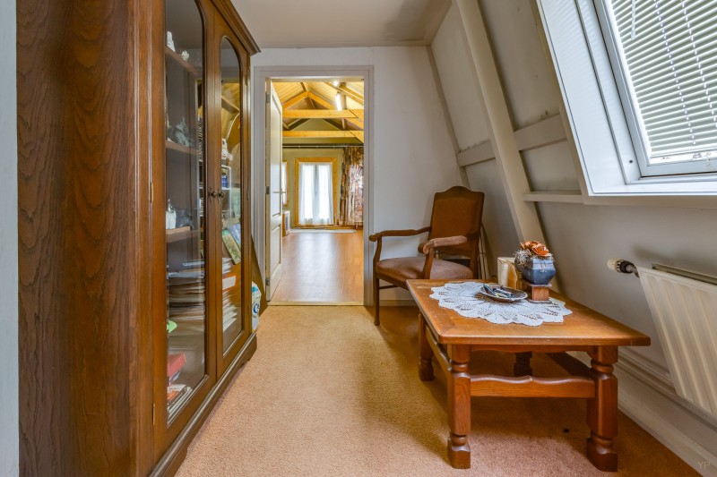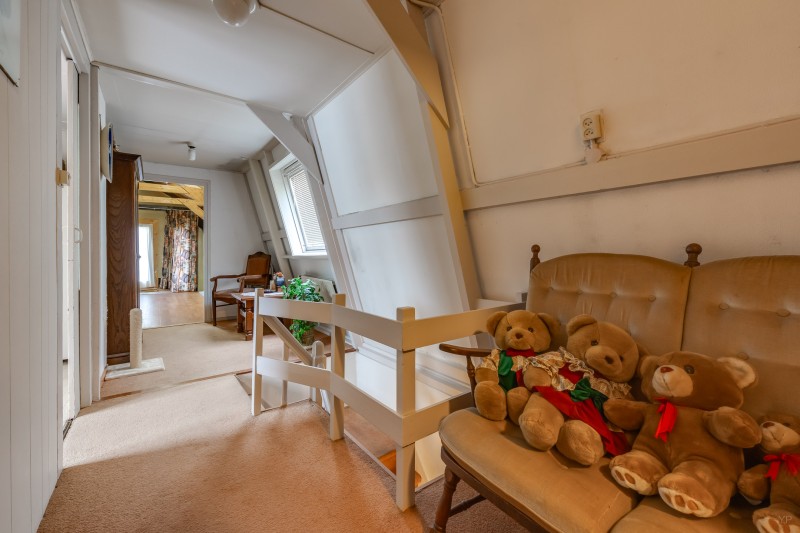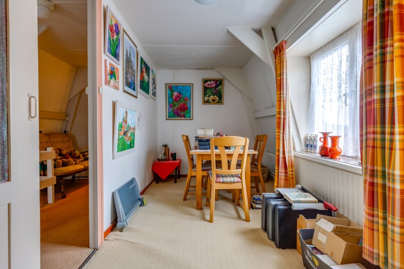 1e Verdieping: overloop, drie slaapkamers, zolderkamer (in gebruik als hobbyruimte)