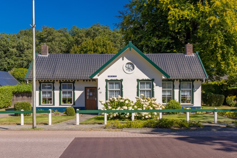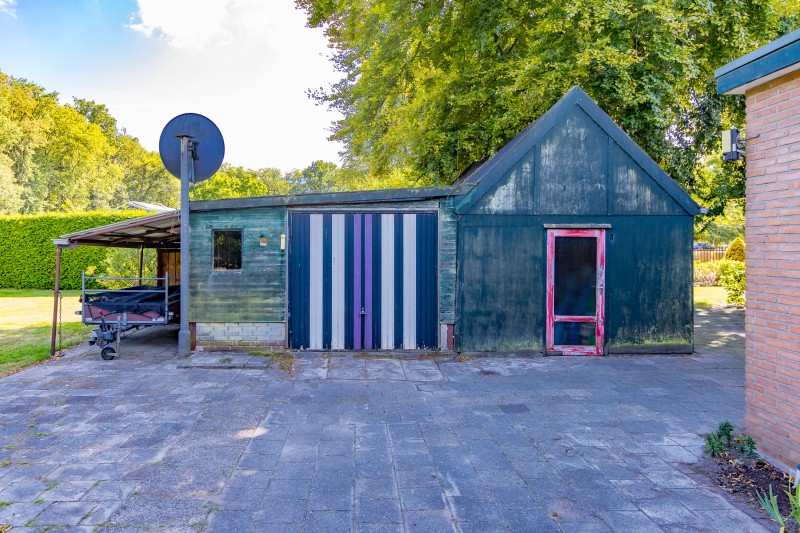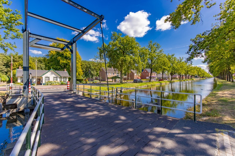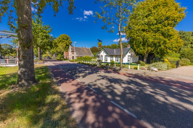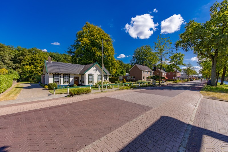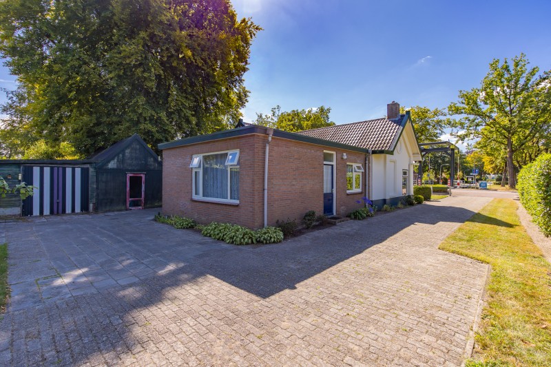 Wat een bijzondere plek om thuis te komen. Deze karakteristieke voormalige brugwachterswoning ligt op een riant perceel van maar liefst 1910 m², met een parkachtig aangelegde tuin met fruitbomen en de bossen letterlijk als achtertuin. Hier geniet je dagelijks van rust, ruimte en natuur. Hertjes die door de tuin wandelen zijn geen uitzondering. Aan de voorzijde kijk je uit over het vaarwater, waar je vanaf het voorjaar tot in de herfst kunt genieten van de voorbijvarende recreatie.