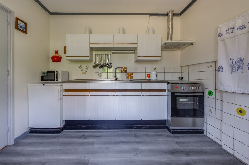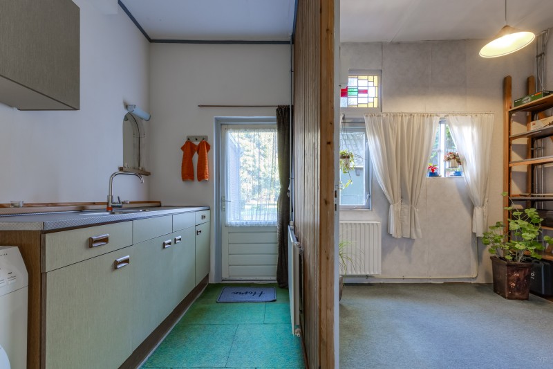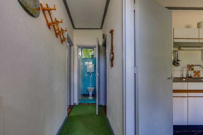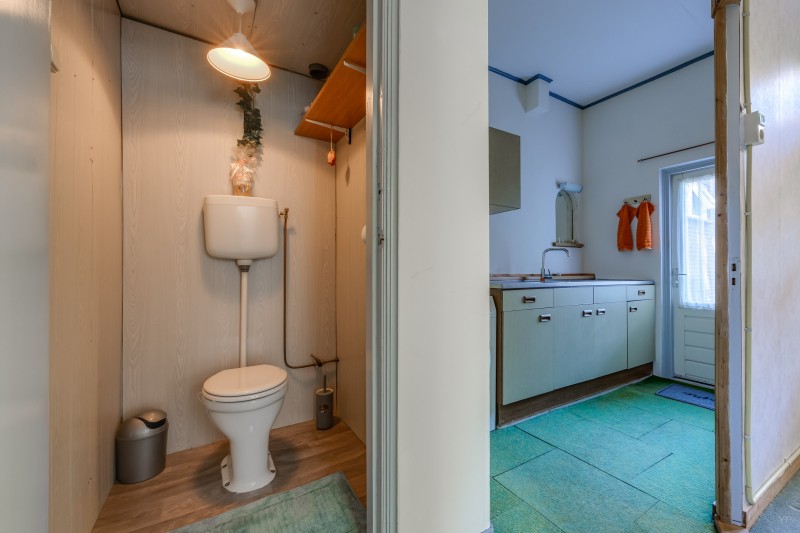achterhal met toilet en keukenwerkblad, berging en achterentree