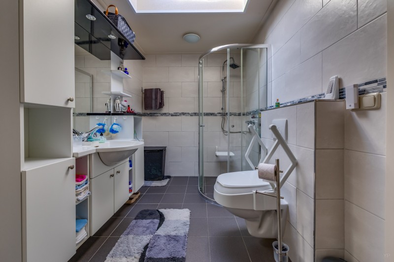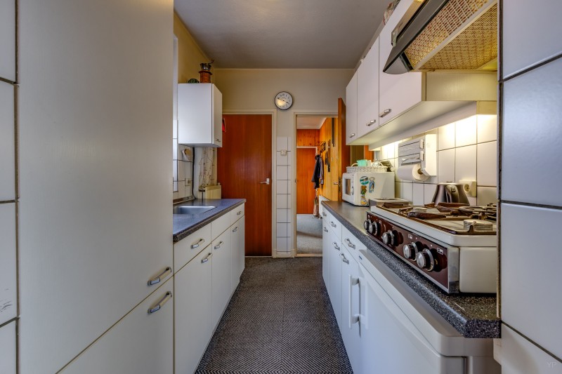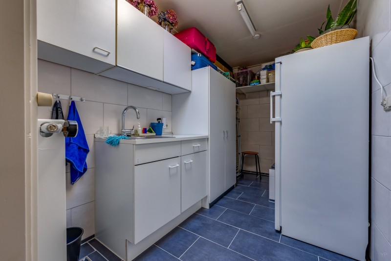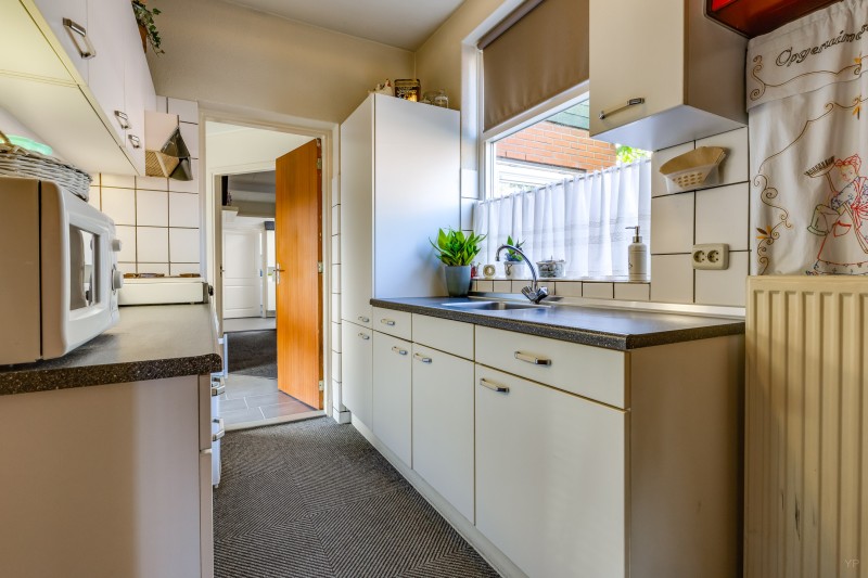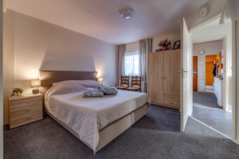 Hal/entree; cv ruimte; toilet met fontein; woonkamer (31 m²) met vaste kast; dichte keuken v.v. aanbouwkeuken met div. inbouwapparatuur; slaapkamer met vaste kastenwand en toegang tot badkamer v.v. inloopdouche, toilet en wastafelmeubel; aansluitend de bijkeuken met toegang tot garage met inpandige klusruimte.
