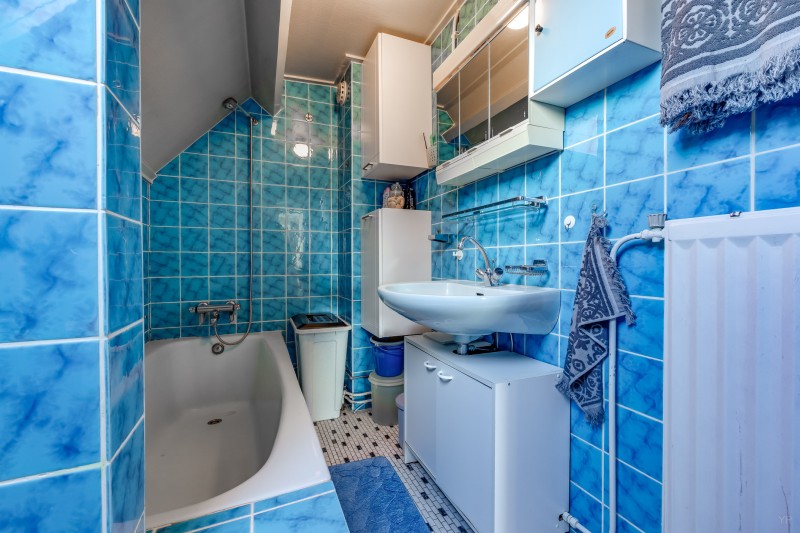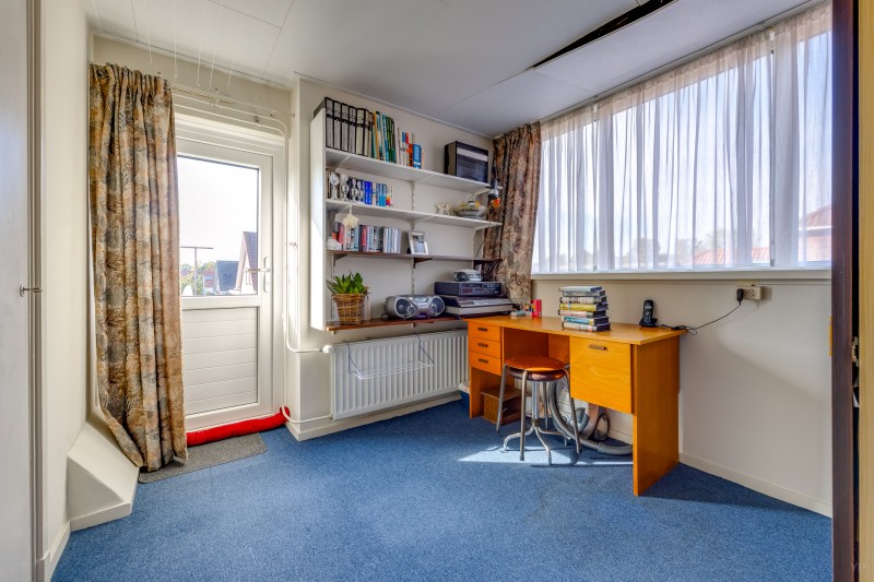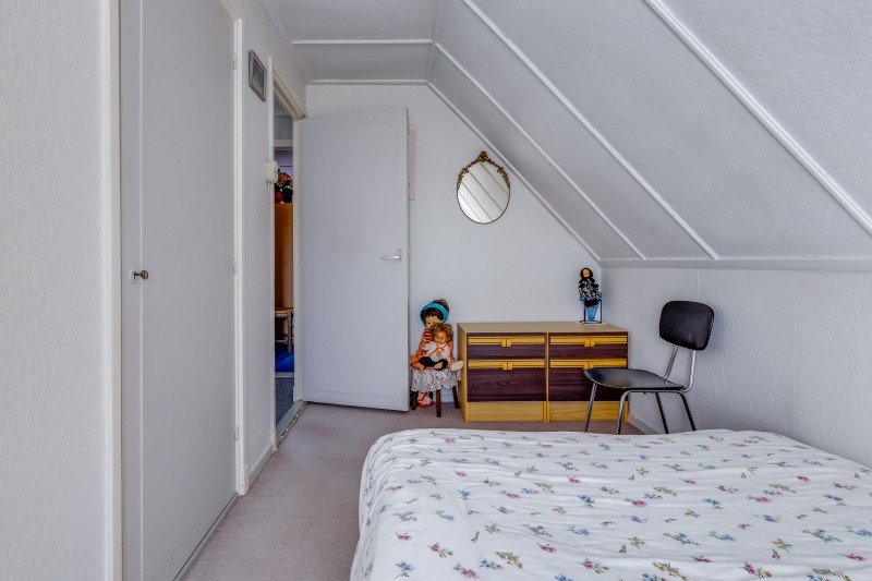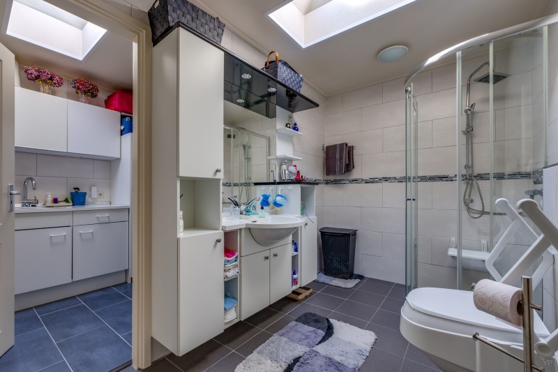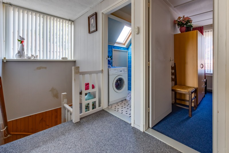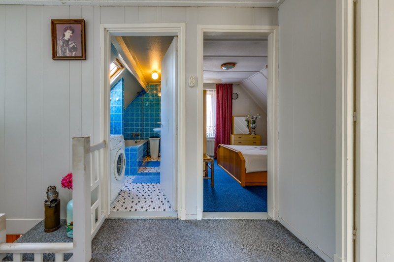 Overloop met dakkapel; 3 slaapkamers allen v.v. vaste kasten en 1 met dakkapel en deur naar plat dak; 2e badkamer met ligbad en vaste wastafel.