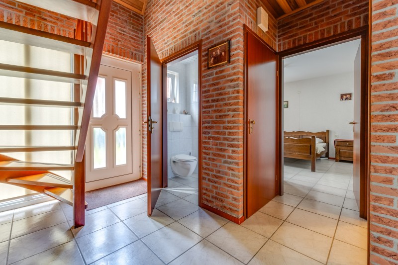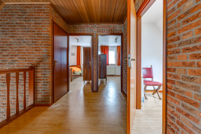 Overloop met vide; separaat toilet; 4 slaapkamers waarvan 2 met bergruimte.
