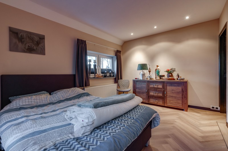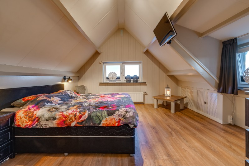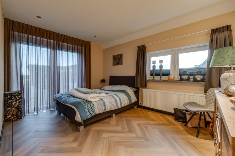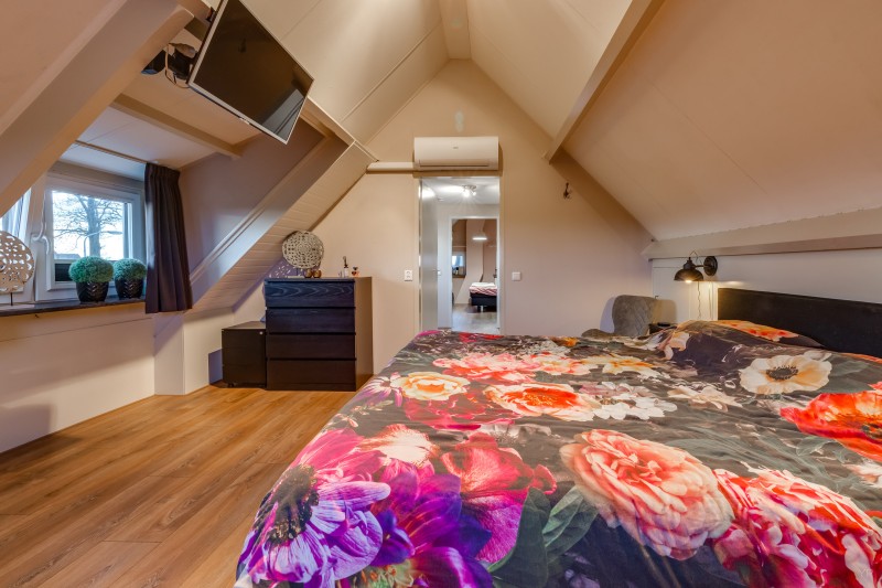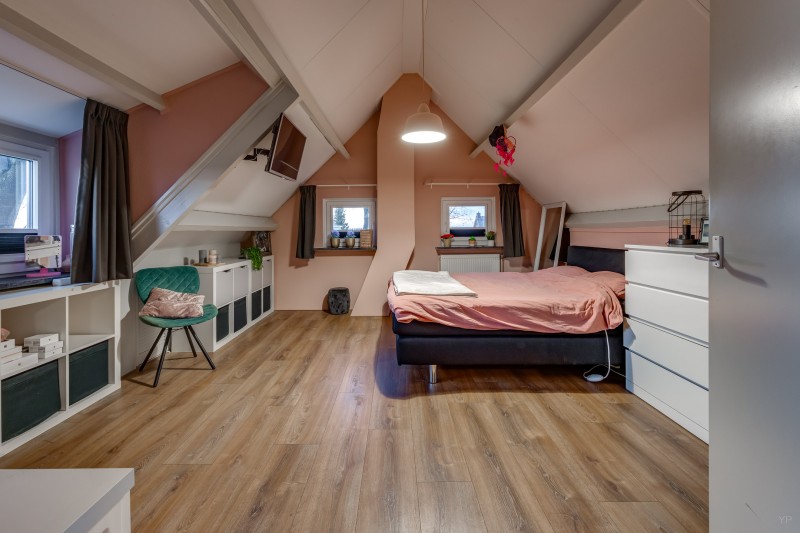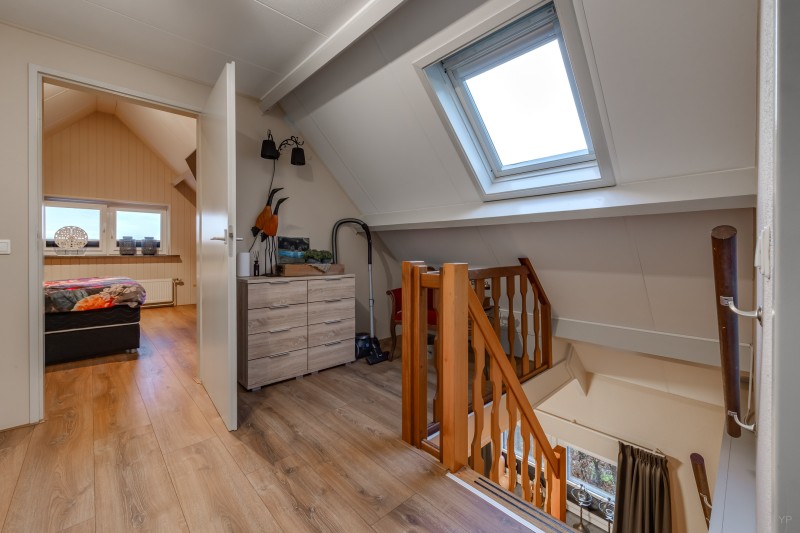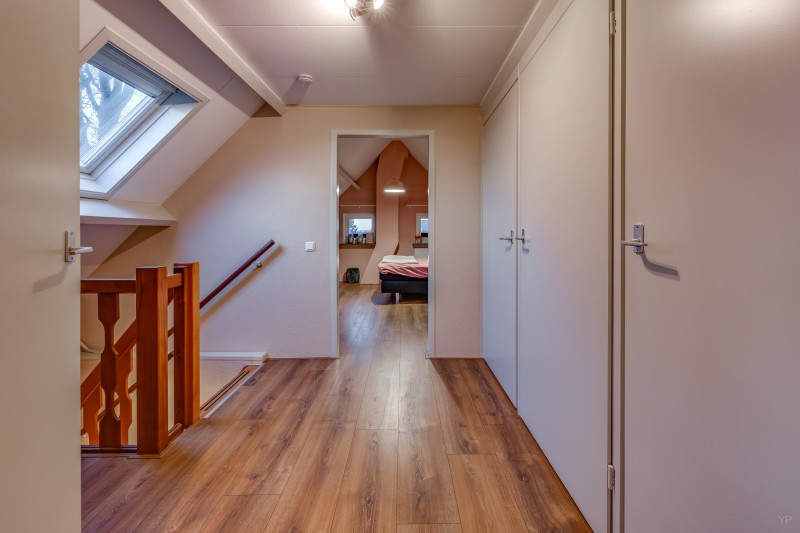 1e verdieping: Ruime overloop met 3 inbouwkasten; 2 royale slaapkamers, beide v.v. dakkapel en airco.