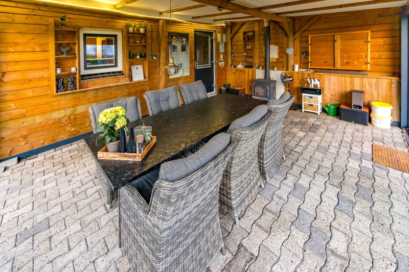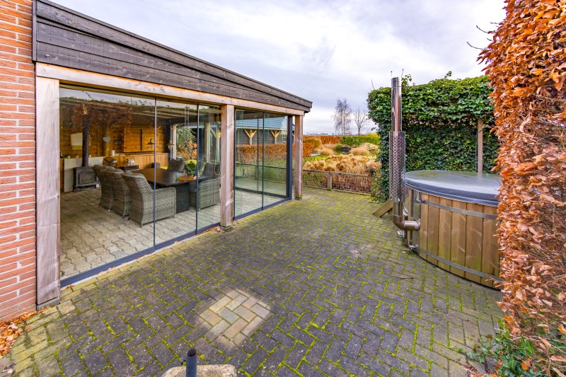 * royaal terras met houtgestookte hottub