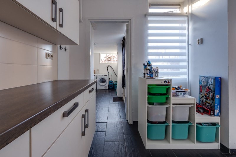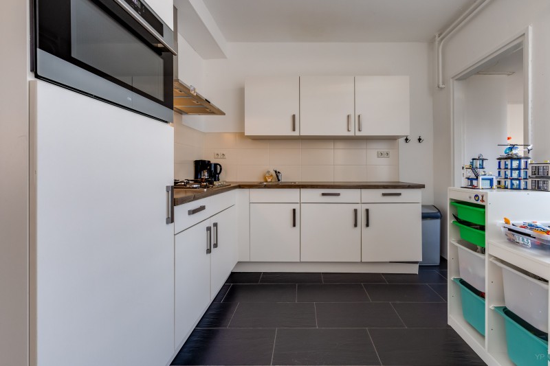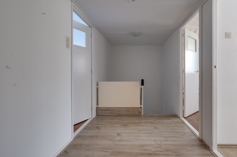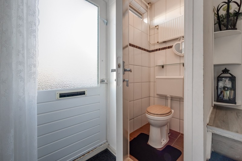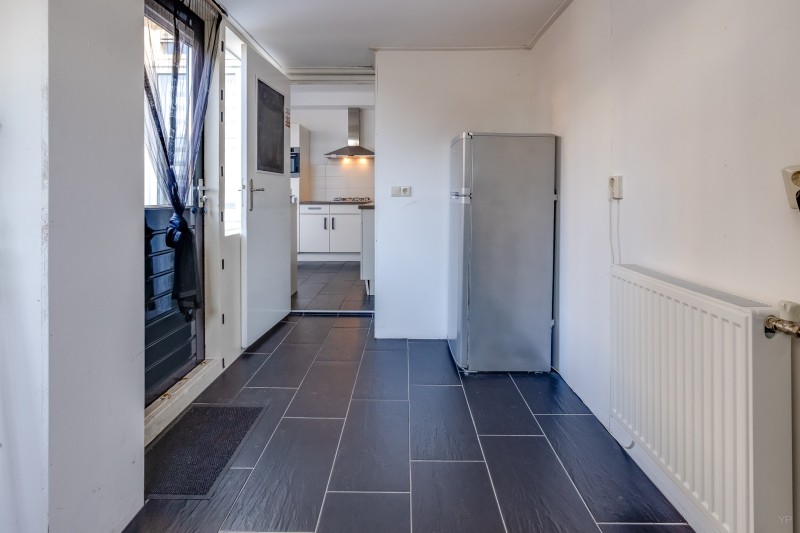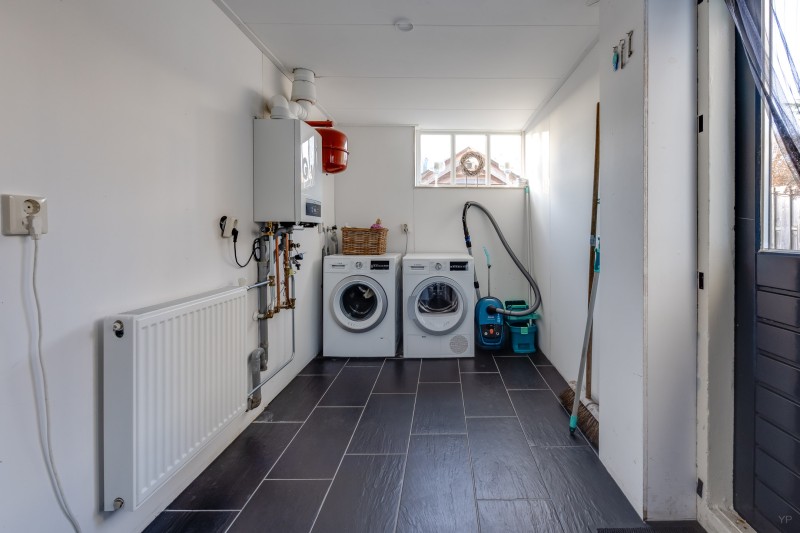 Hal/ entree, toilet, meterkast (4 grp), kelderkast, doorzon woonkamer, open keuken met nette aanbouwkeuken v.v. div. inbouwapparatuur ( 4 pits gaskookplaat, combi magnetron/oven, spoelbak en wasemkap) Bijkeuken met achter entree en aansl. voor wasmachine/droger. CV opstelplaats ( Nefit HR ketel/ 2013)