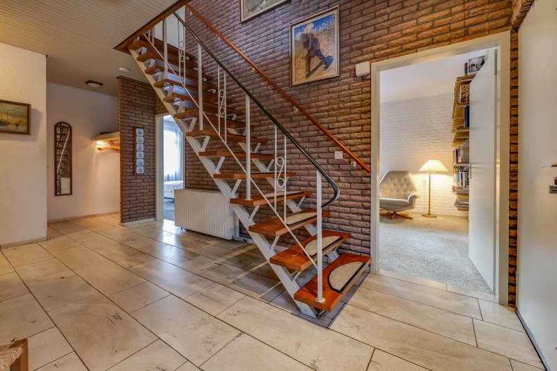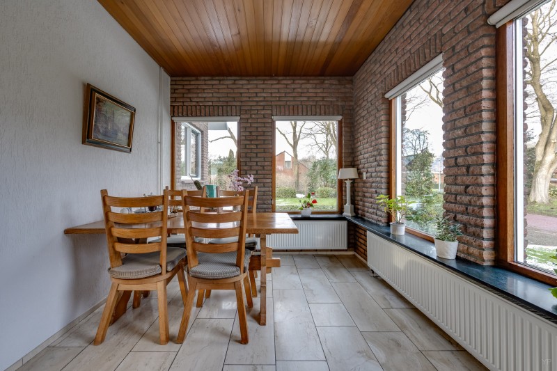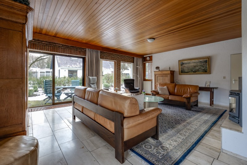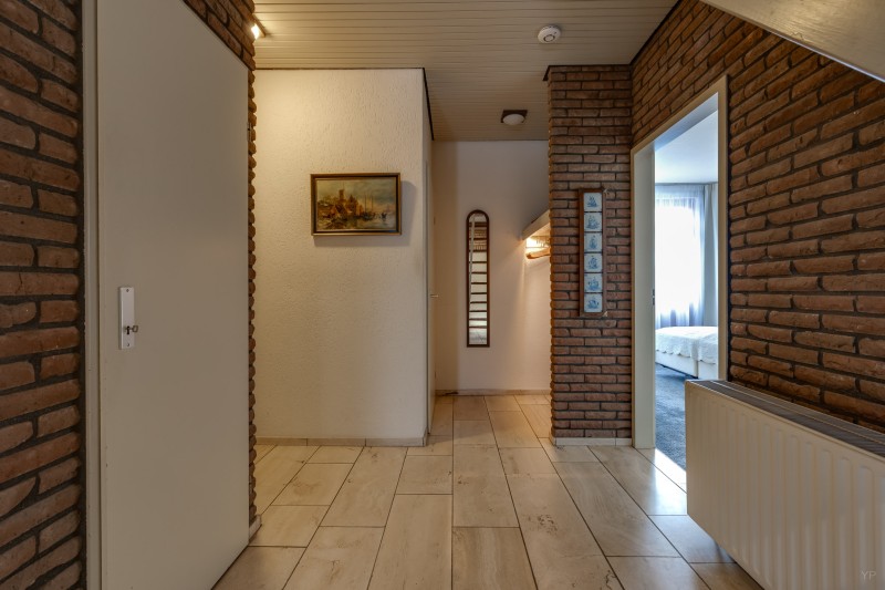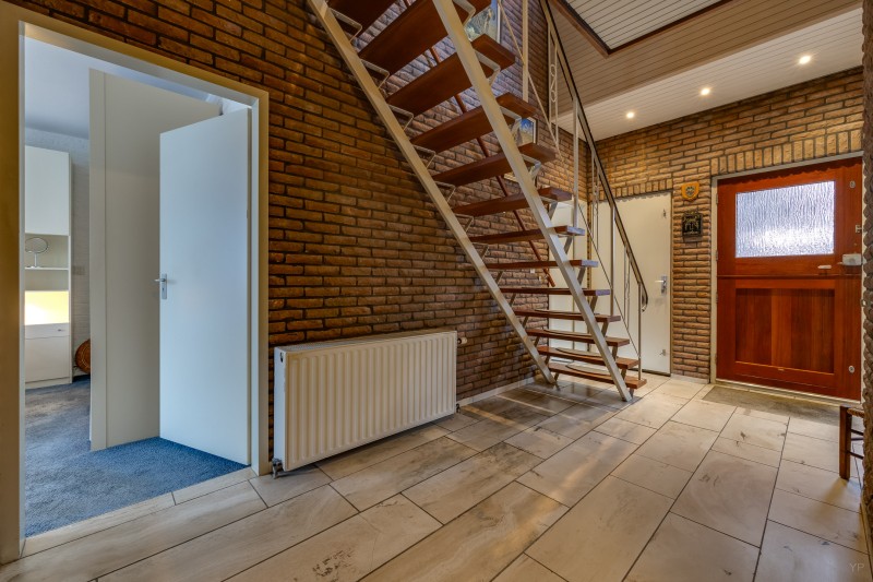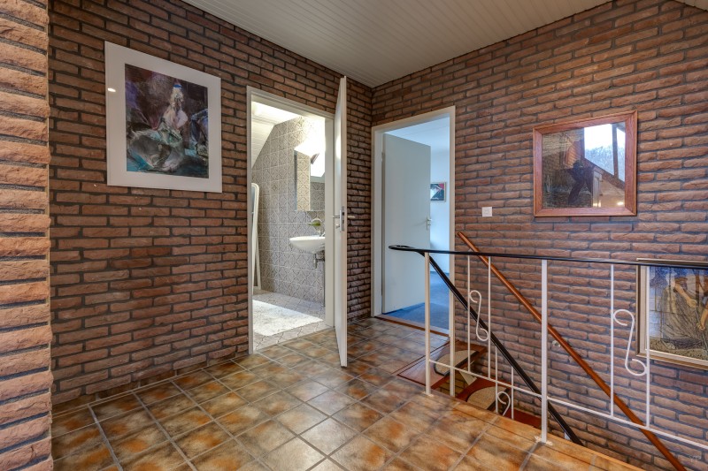 Bij binnenkomst valt direct de royale hal op, een prachtige entree met garderobe, meterkast en modern toilet. Vanuit hier loopt u door naar de sfeervolle woonkamer, waar de gashaard en de brede schuifpui naar het zonneterras een heerlijk lichte en uitnodigende leefruimte creëren.