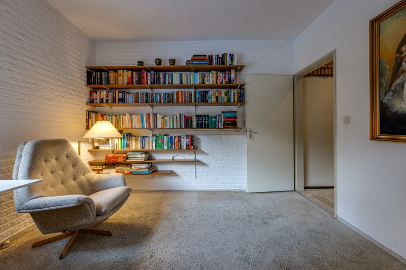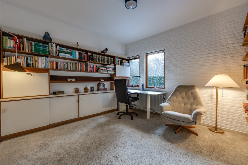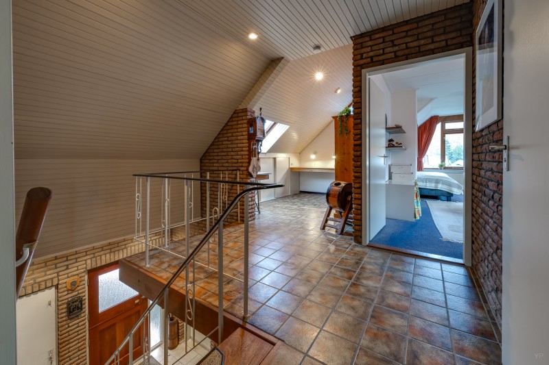 De ruime overloop met vide geeft deze verdieping een prachtige open uitstraling. Hier bevindt zich een lichte hobbyhoek met dakraam en bergruimte — desgewenst eenvoudig om te vormen tot een vijfde slaapkamer.