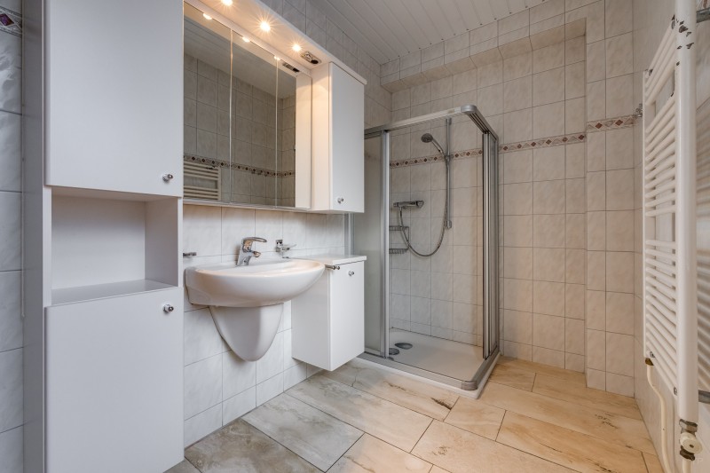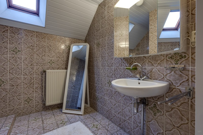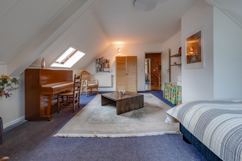Daarnaast is er een tweede badkamer met inloopdouche, toilet en vaste wastafel. De verdieping biedt verder twee zeer royale slaapkamers (ca. 29 en 21 m²). De grootste kamer leent zich uitstekend om te splitsen, waardoor meerdere indelingsmogelijkheden ontstaan.