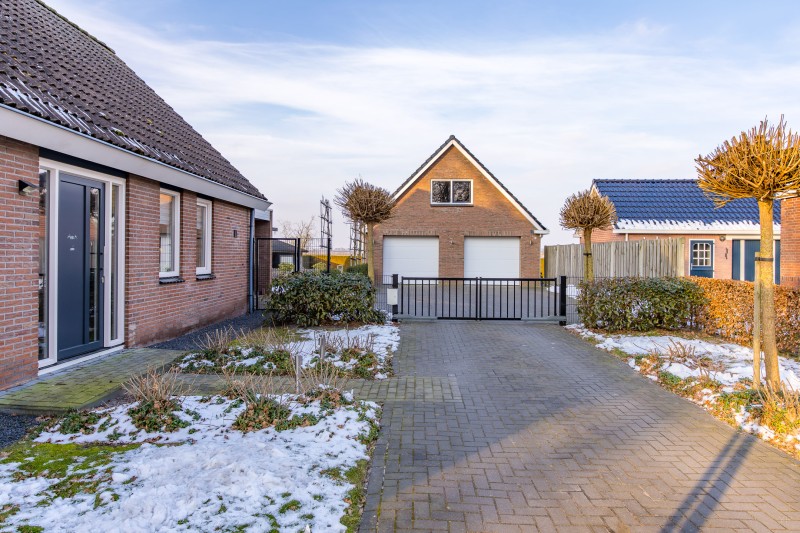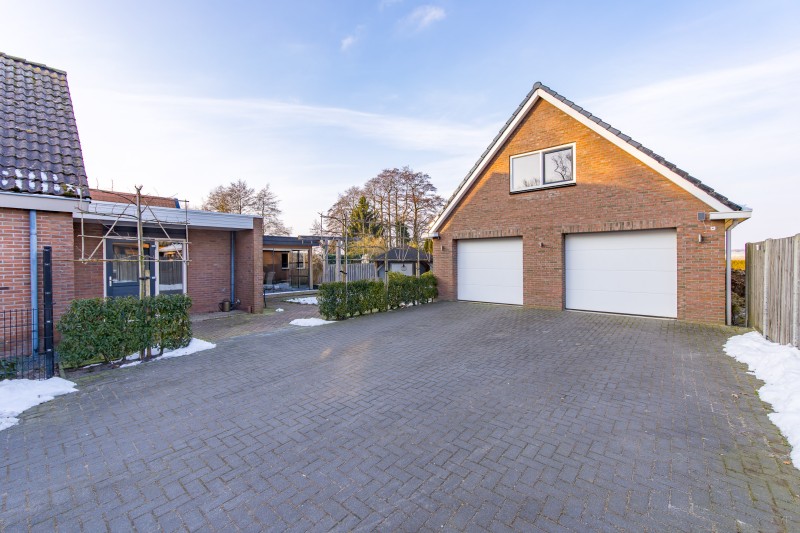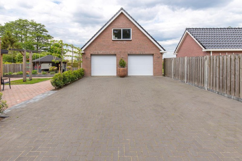 De woning wordt compleet gemaakt door een royale vrijstaande dubbele stenen garage, voorzien van elektrische garagedeuren, elektra en een ruime zolder die bereikbaar is via een vaste trap. Perfect voor opslag, hobby’s of het stallen van meerdere voertuigen. De brede oprit met elektrisch hekwerk biedt bovendien volop parkeergelegenheid voor auto’s, een camper of caravan.