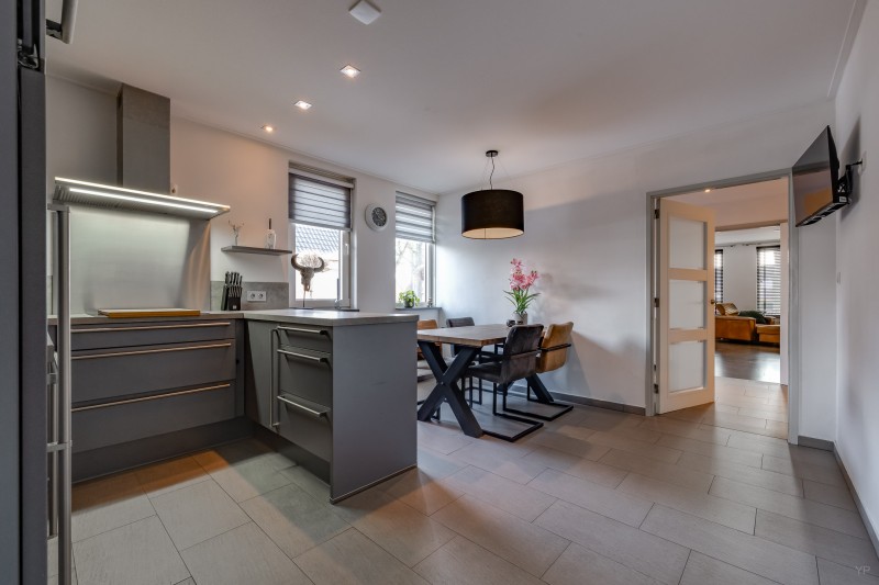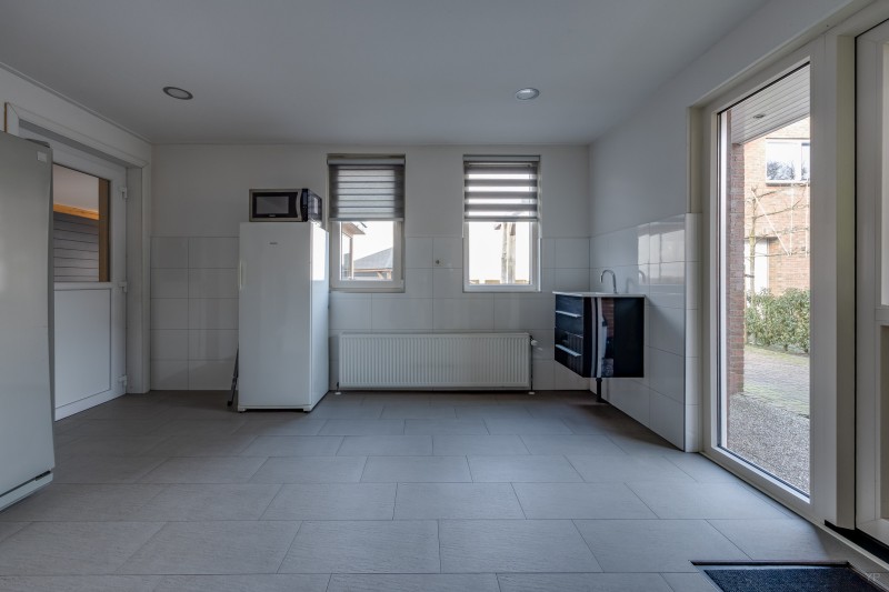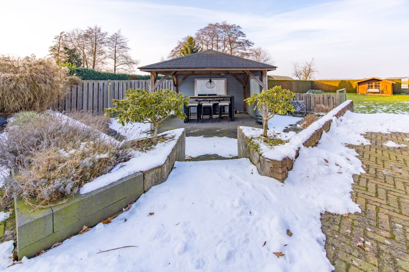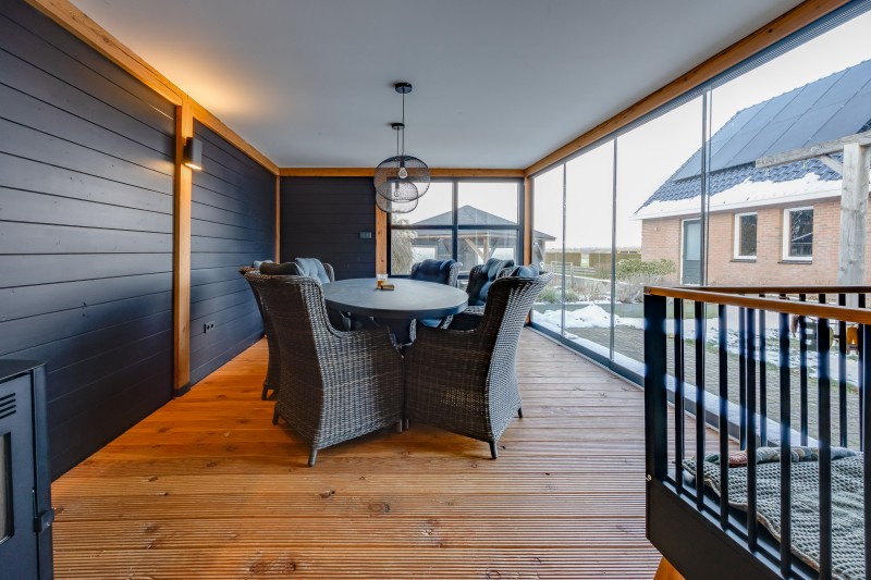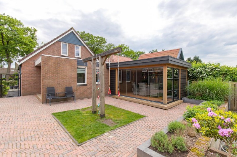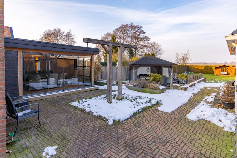 Een absoluut pluspunt is de sfeervolle serre, uitgevoerd met glazen schuifdeuren en ingericht als gezellig bruin café – een heerlijke plek voor lange avonden met vrienden of familie. De achtertuin is een paradijs voor tuinliefhebbers en rustzoekers, met een vrijstaande houten overkapping waar je na een drukke dag volledig tot rust komt, terwijl je uitkijkt over de omliggende landerijen.