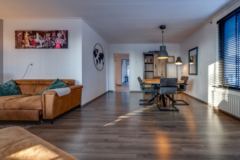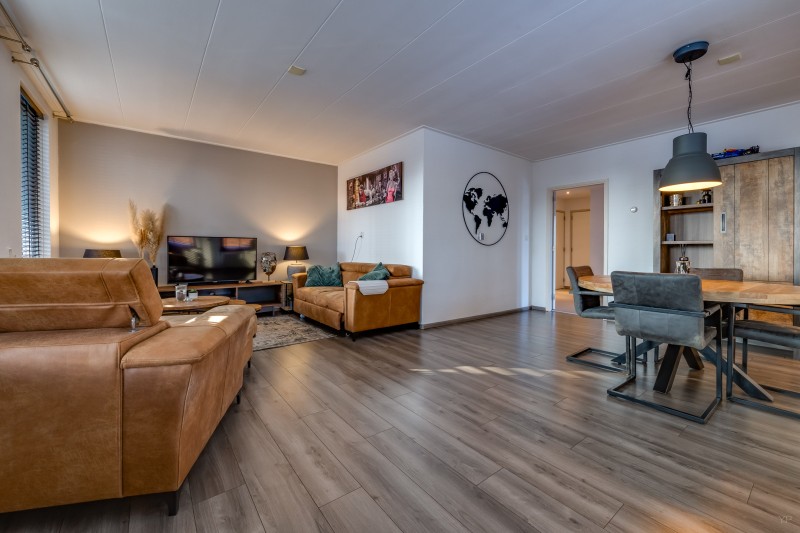 Bij binnenkomst valt direct de ruimte op. De lichte L-vormige woonkamer biedt een fraai uitzicht op het kanaal en vormt samen met de moderne woonkeuken een fijne leefruimte. De woning beschikt daarnaast over een slaap- c.q. hobbykamer en badkamer op de begane grond, ideaal voor levensloopbestendig wonen of voor wie graag extra werkruimte nodig heeft.