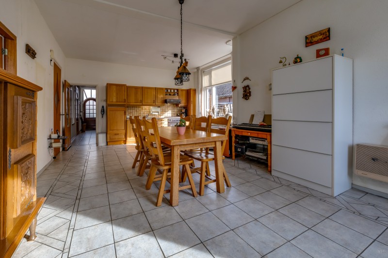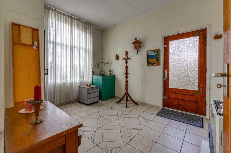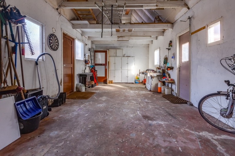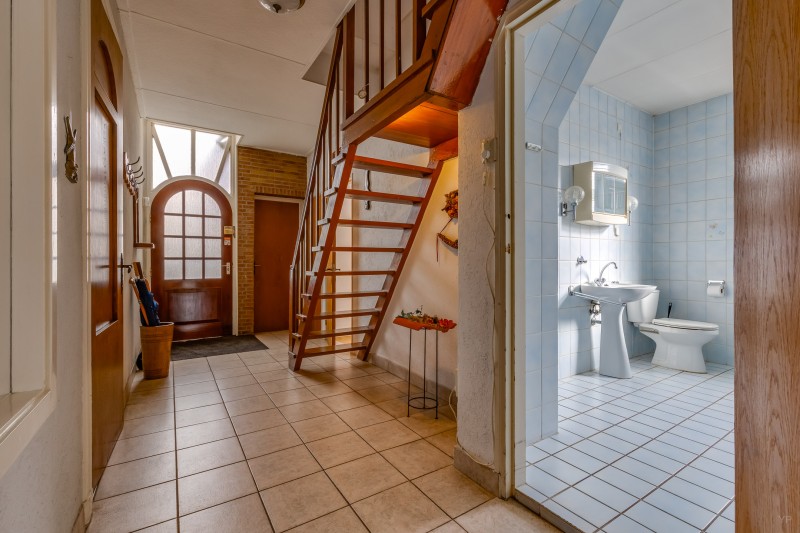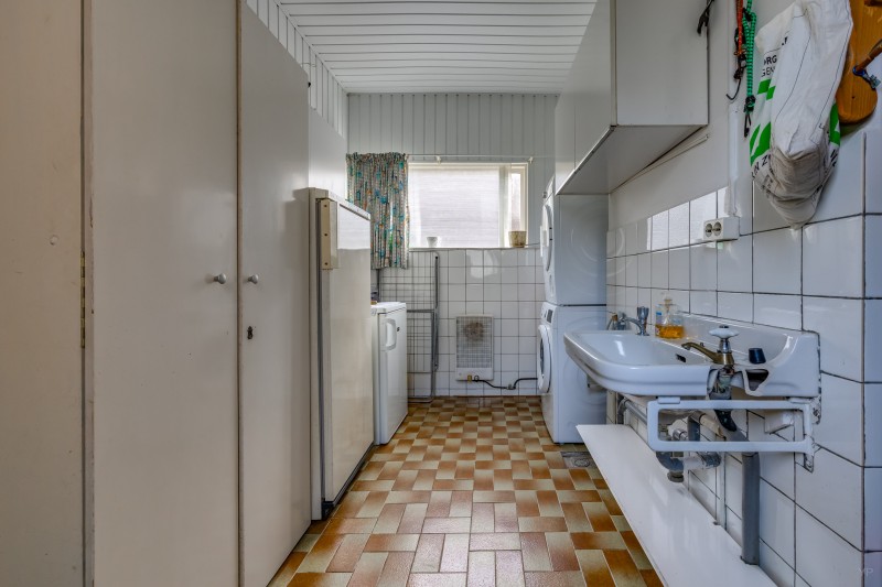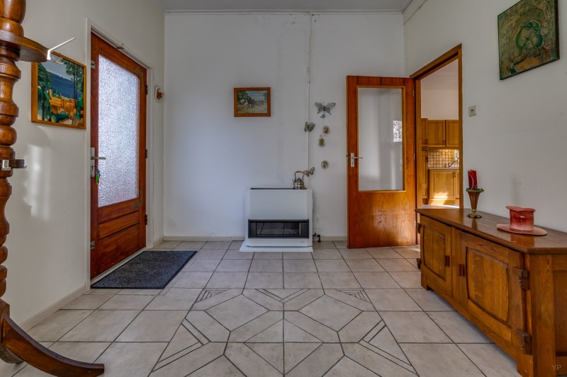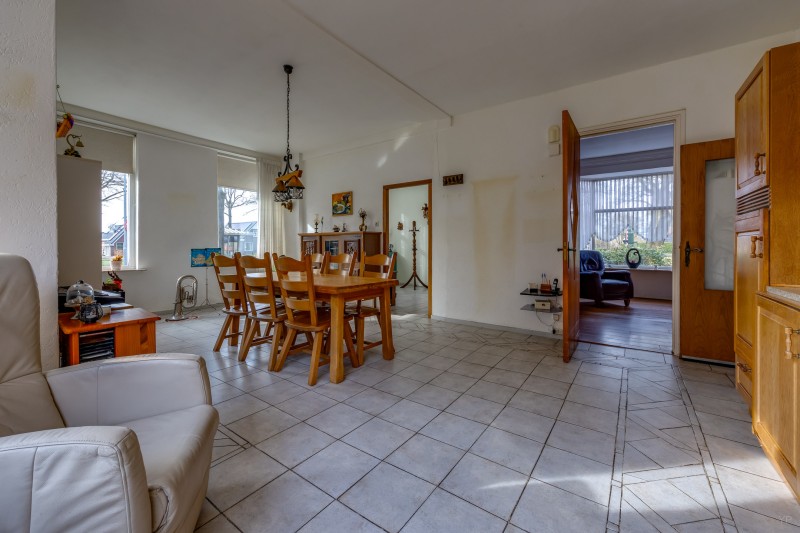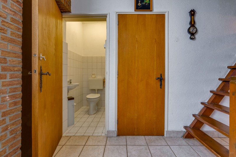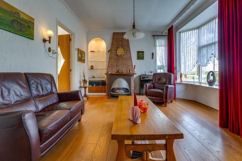 Zeer royale hal/entree (voorm. postloket); meterkast; zeer royale woon- c.q. leefkeuken met aanbouwkeuken v.v. div. inbouwapparatuur; sfeervolle woonkamer met erker en gashaard; slaapkamer met toegang tot kelderruimte; toilet; tussenhal met achter-entree; logeerkamer; badkamer met ligbad, douche, toilet en vaste wastafel; bijkeuken met aansl. voor wasm. en droger; toegang tot aangebouwde steen schuur (voorm. garage) voorzien van elektra en 2 loopdeuren.