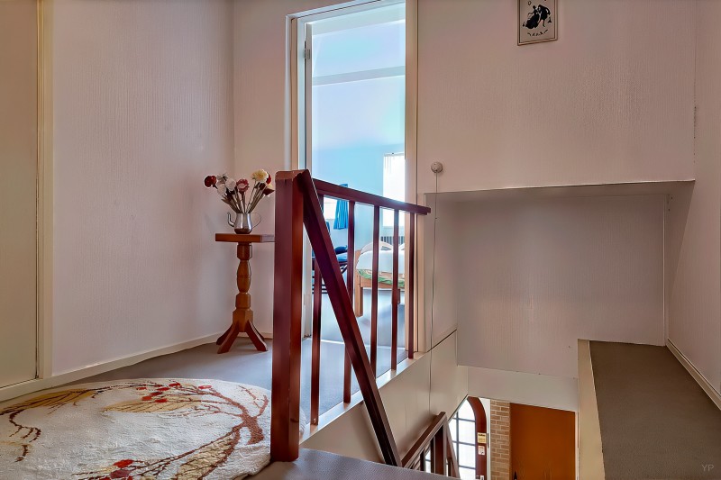 Overloop met 2 royale bergruimtes aan beide zijden; 3 slaapkamers.