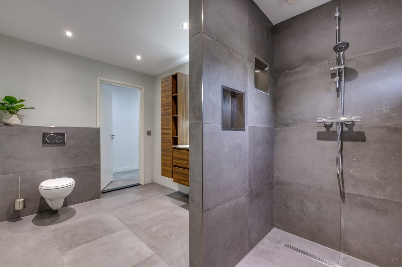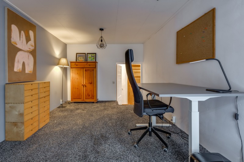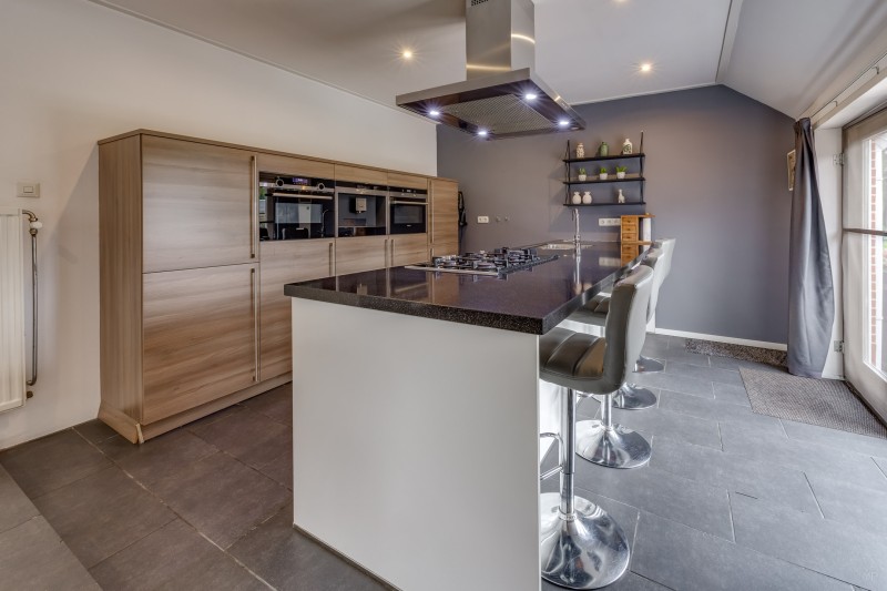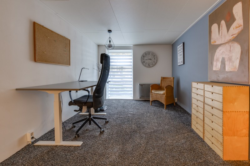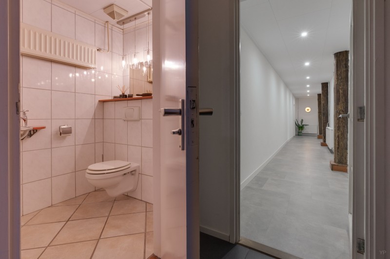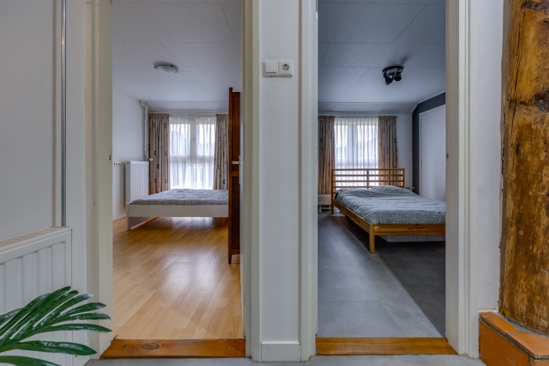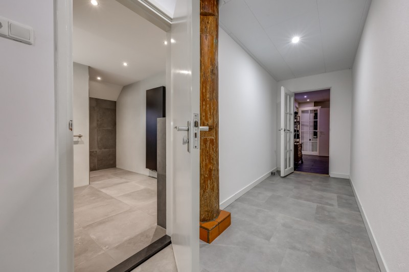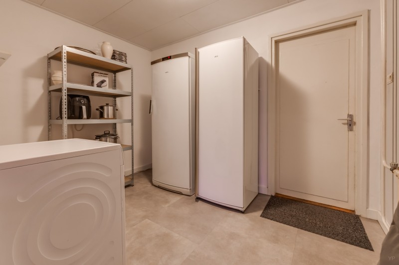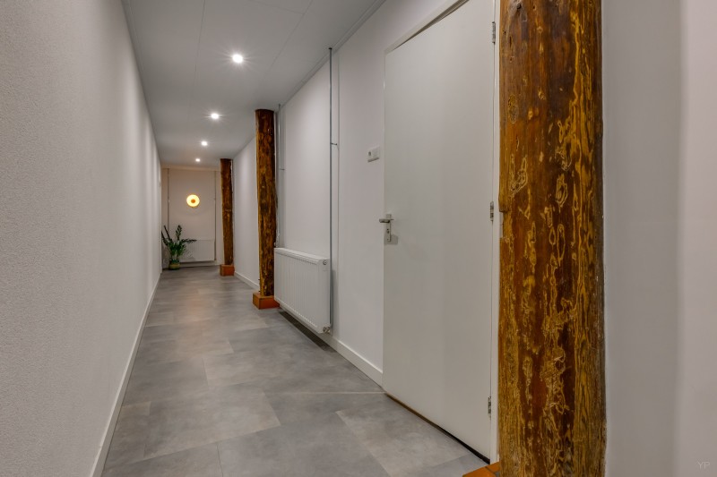 Royale woonkeuken met moderne aanbouwkeuken v.v. inbouwapparatuur en kookeiland; zijentree; eetkamer met vaste kast; ruime L vormige woonkamer v.v. massief houten vloer en houtkachel; tussenhal met toegang tot slaap-/hobbykamer (genoemd opkamer) met daaronder een ruime kelder; bijkeuken met doorgang naar de deel c.q. schuurruimte; ketelruimte; ruim modern toilet met fontein; nieuwe badkamer met douchehoek, 2e toilet, wastafelmeubel en vloerverwarming; de 3 overige slaapkamers, allen v.v. vaste kasten.